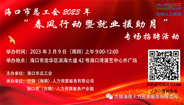 6月24日上午9時(shí)-12時(shí),由海口市龍華區(qū)人力資源和社會保障局、海口市(龍華)人力資源服務(wù)產(chǎn)業(yè)園主辦,杰...